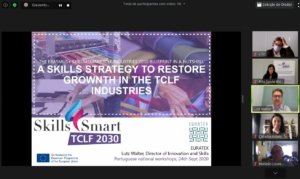 This webinar was attended by representatives of the European Confederations, of the TCLF sectors (EURATEX, CEC, COTANCE), and different entities and institutions related to vocational education in these sectors in Portugal.